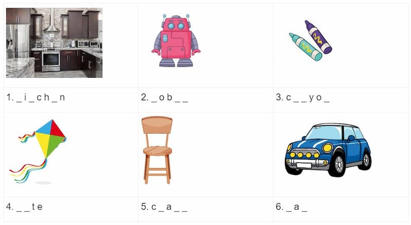 3. crayon 4. kite |