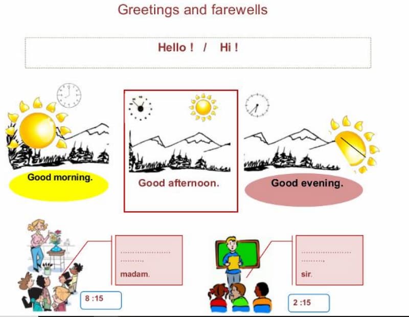 Theo phân môn tiếng Anh lớp 1, các bạn học sinh sẽ được làm quen từ các mẫu câu ngắn, đơn giản nhất gồm: