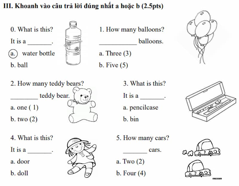 Bài ôn tập tiếng Anh lớp 1 lên lớp 2 - Đề 5