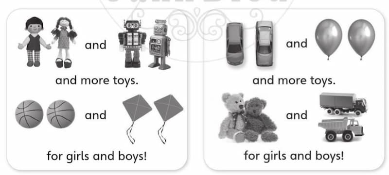 1. Dolls and robots are more toys. Balls and kites for girls and boys!