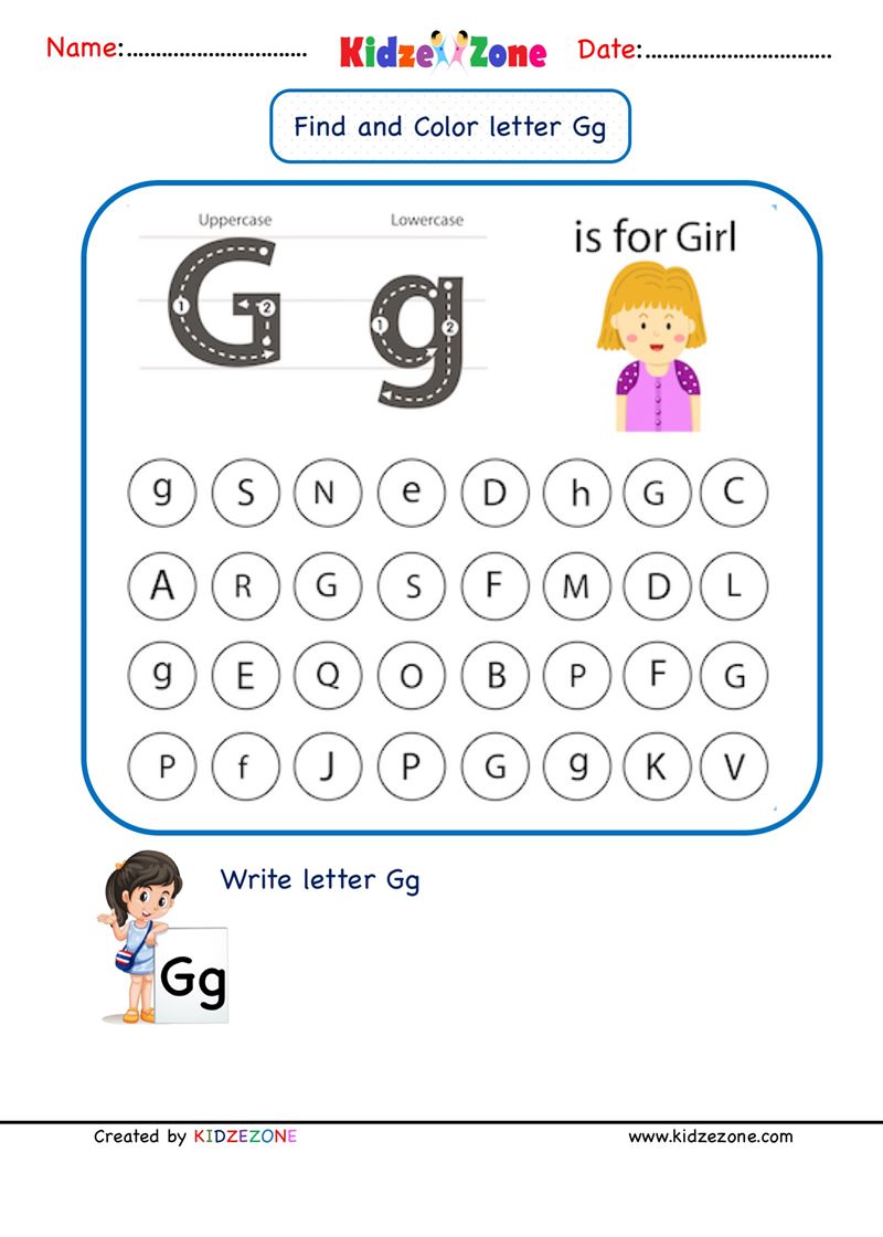 Hướng dẫn: Bé hãy tìm chữ “g” trong bảng và tô màu yêu thích cho chúng.