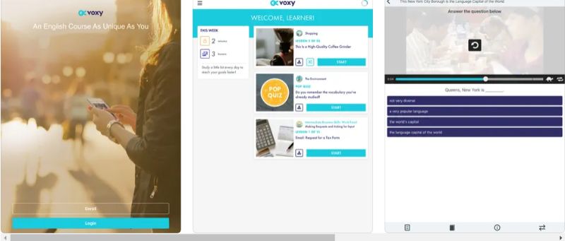 Voxy là ứng dụng học tiếng Anh trực tuyến giúp người học cải thiện các kỹ năng tiếng Anh nghe, nói, từ vựng và ngữ pháp tiếng Anh. Ứng dụng học tiếng Anh trên iPad này tập trung vào việc cung cấp nội dung học dựa trên các tình huống và ngữ cảnh thực tế. Người học sẽ được tiếp cận với các bài viết, đoạn hội thoại, video và bài hát có liên quan đến cuộc sống và công việc thường ngày.