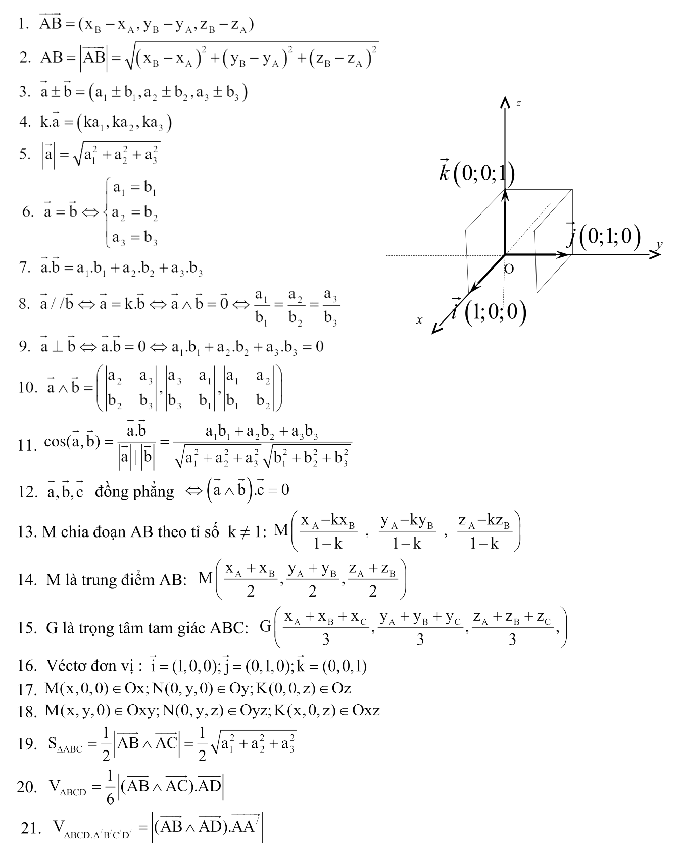 Tóm tắt lý thuyết hệ tọa độ trong không gian toán 12, chuyên đề tọa độ trong không gian oxyz: