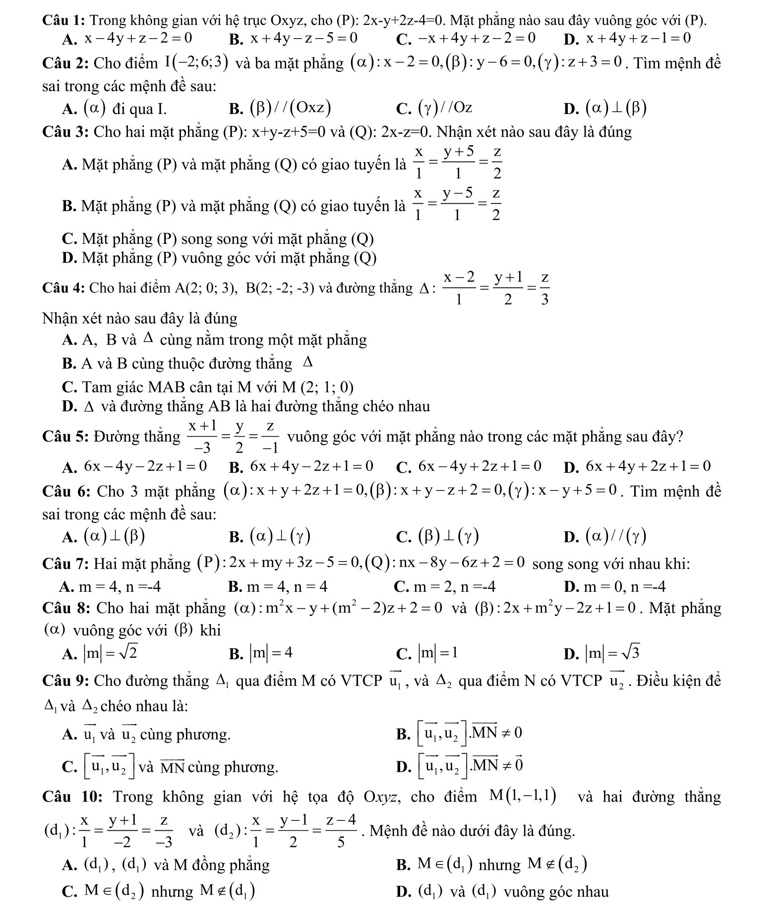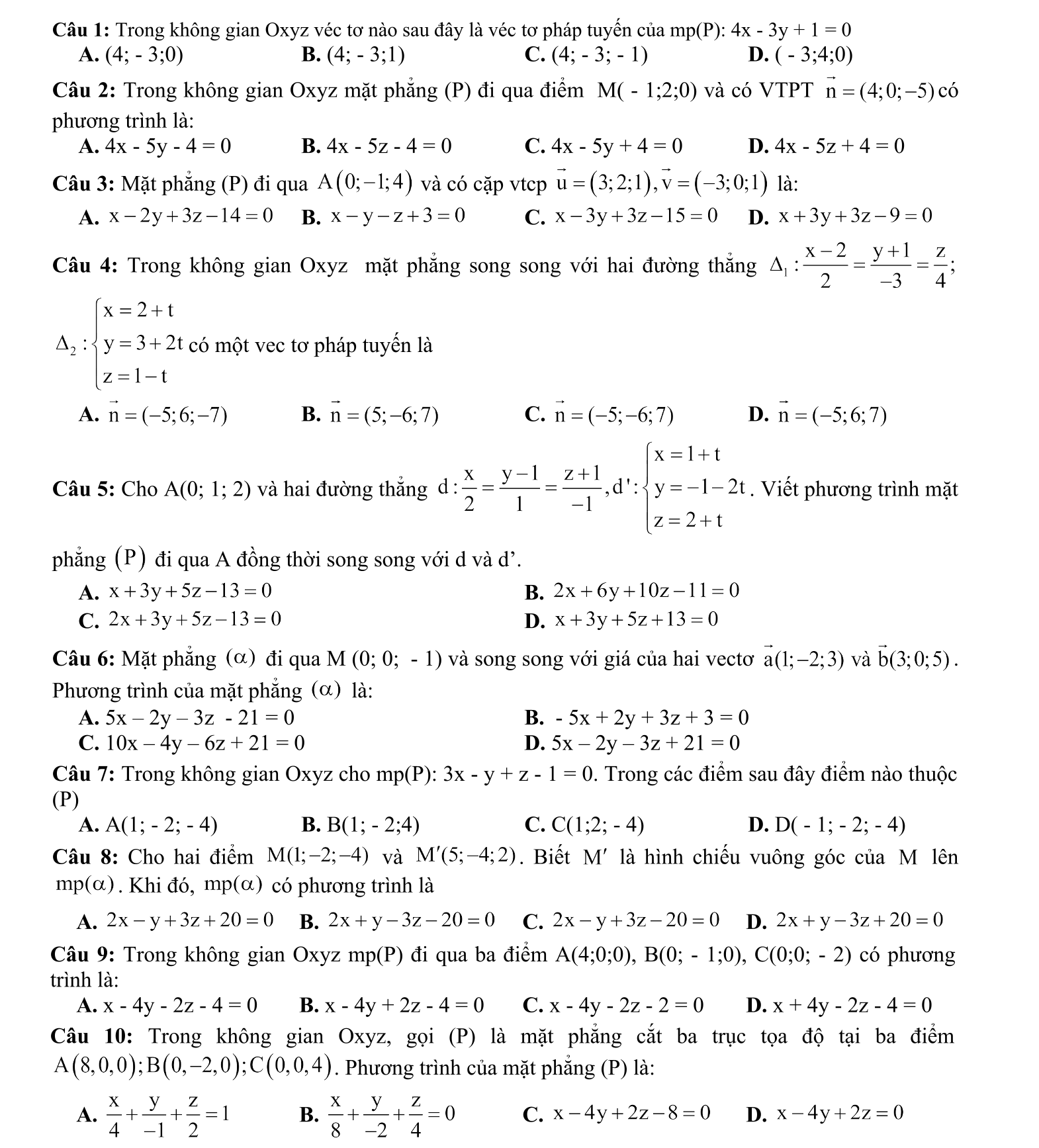 Phương trình mặt phẳng