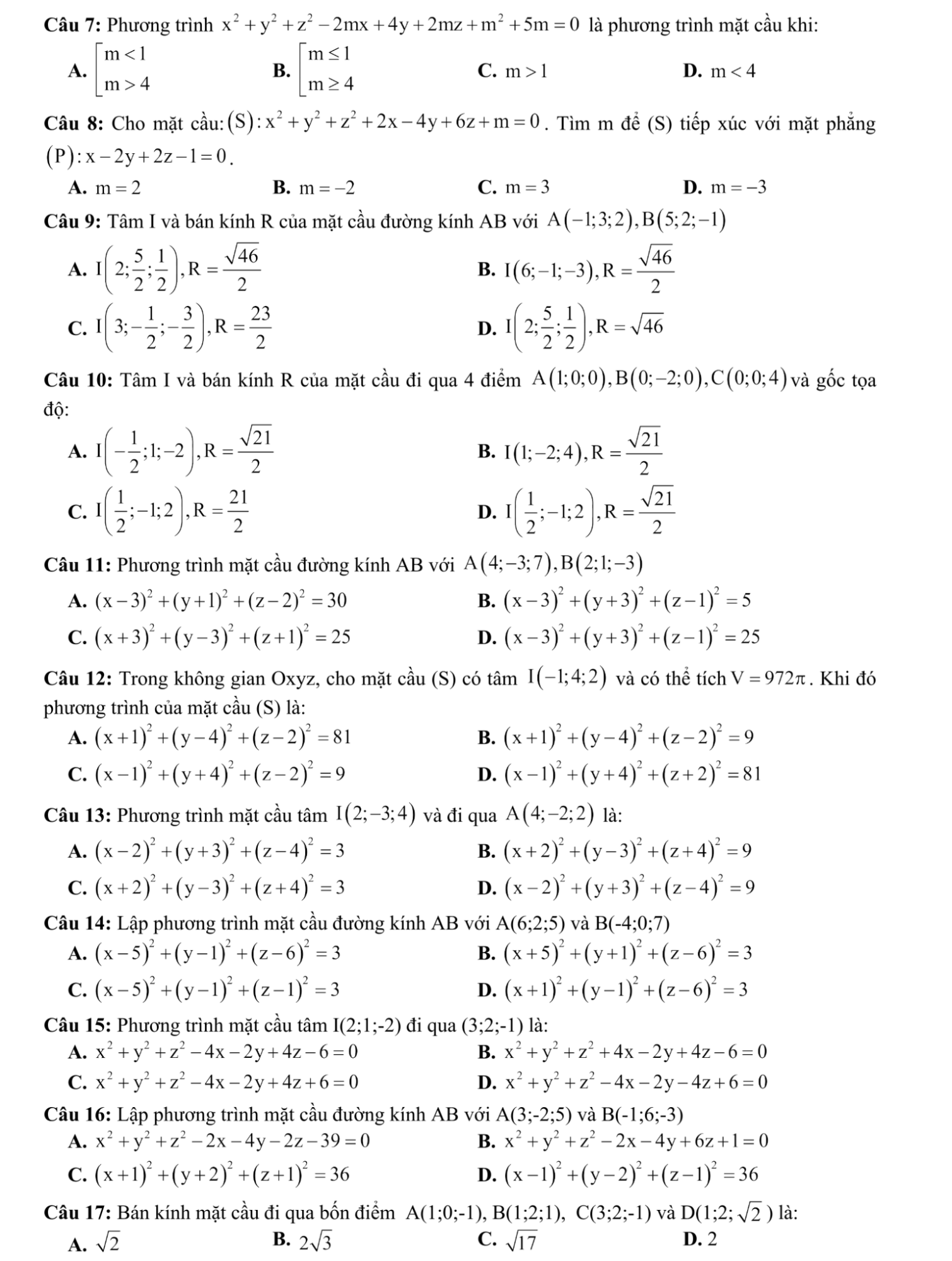 Phương trình mặt cầu