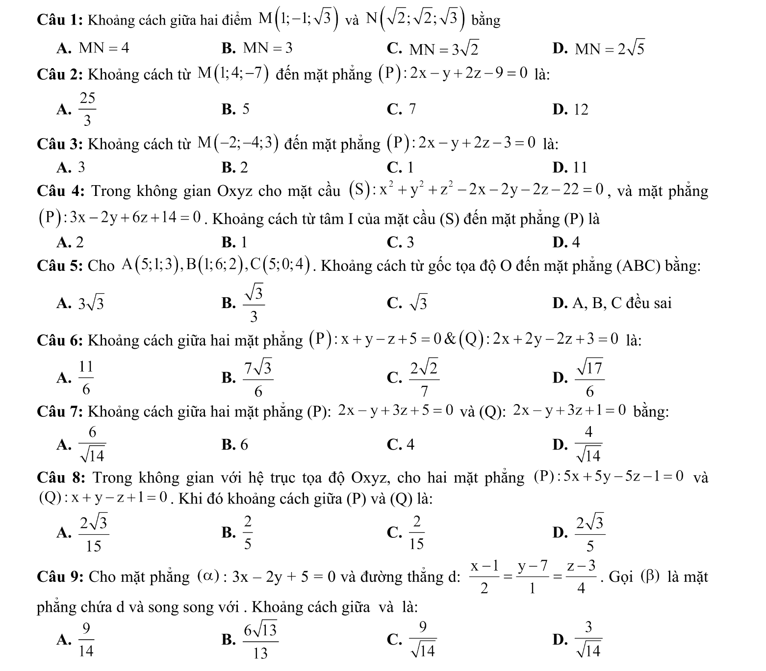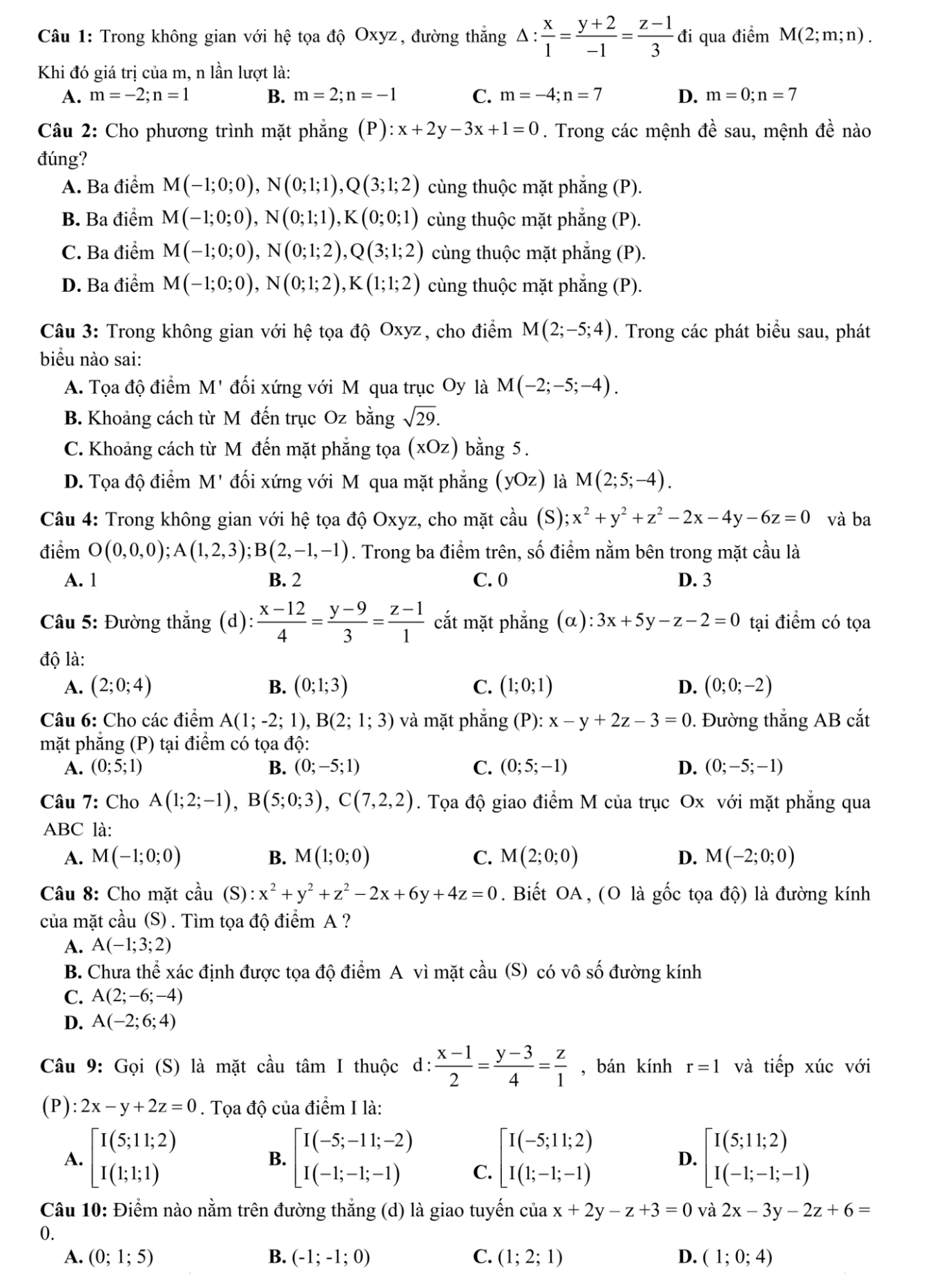 Trong chuyên đề hình học không gian, kiến thức về vị trí tương đối giữa điểm, mặt phẳng, đường thẳng, mặt cầu chiếm phần lớn các câu hỏi trong đề thi THPT Quốc Gia.