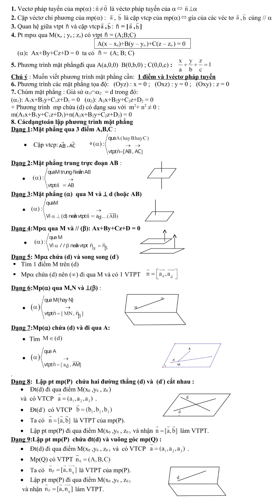 Nắm trọn chuyên đề hình học không gian phương trình mặt phẳng với các kiến thức được tóm gọn sau đây: