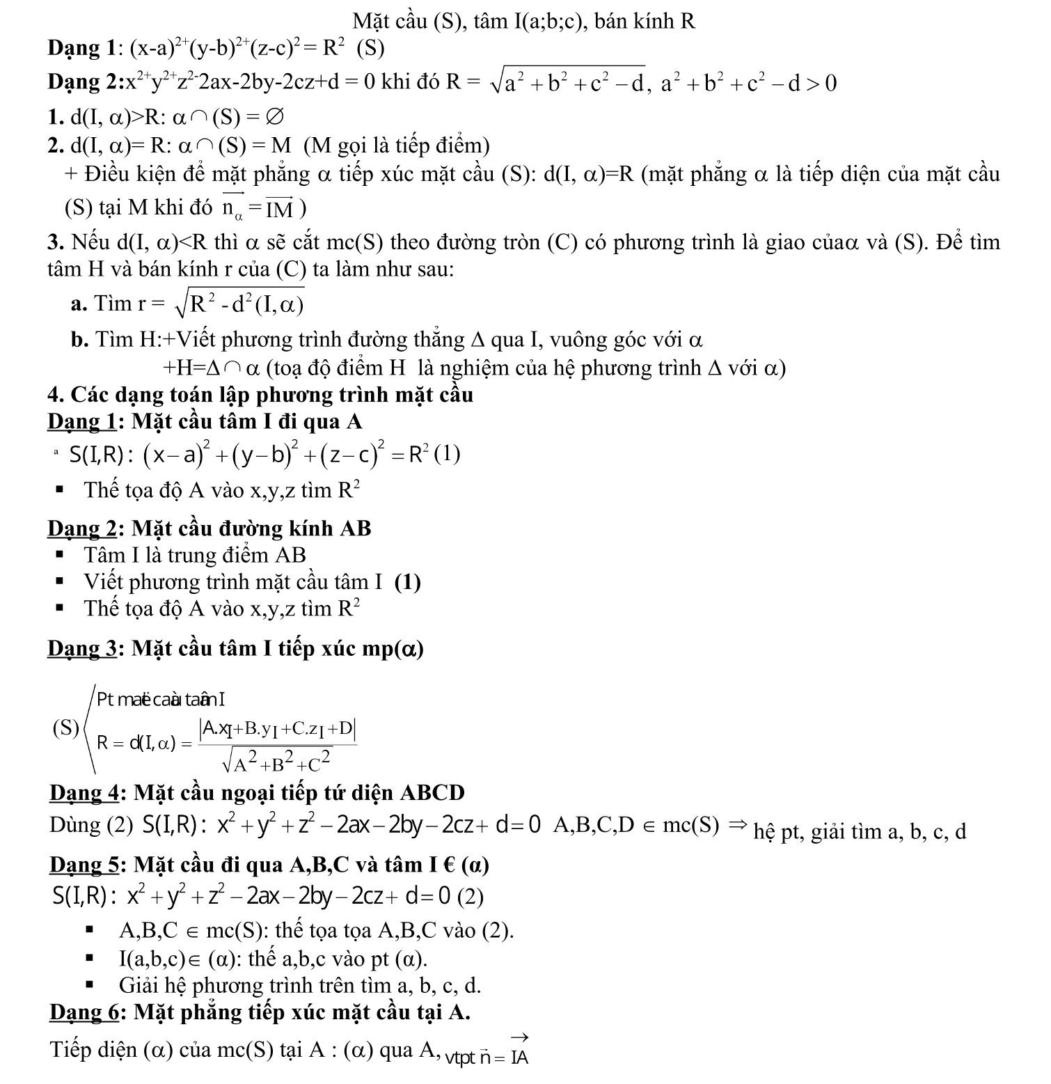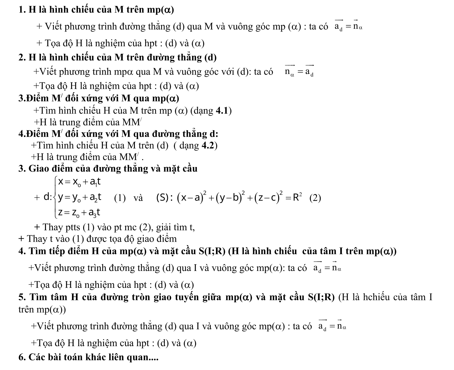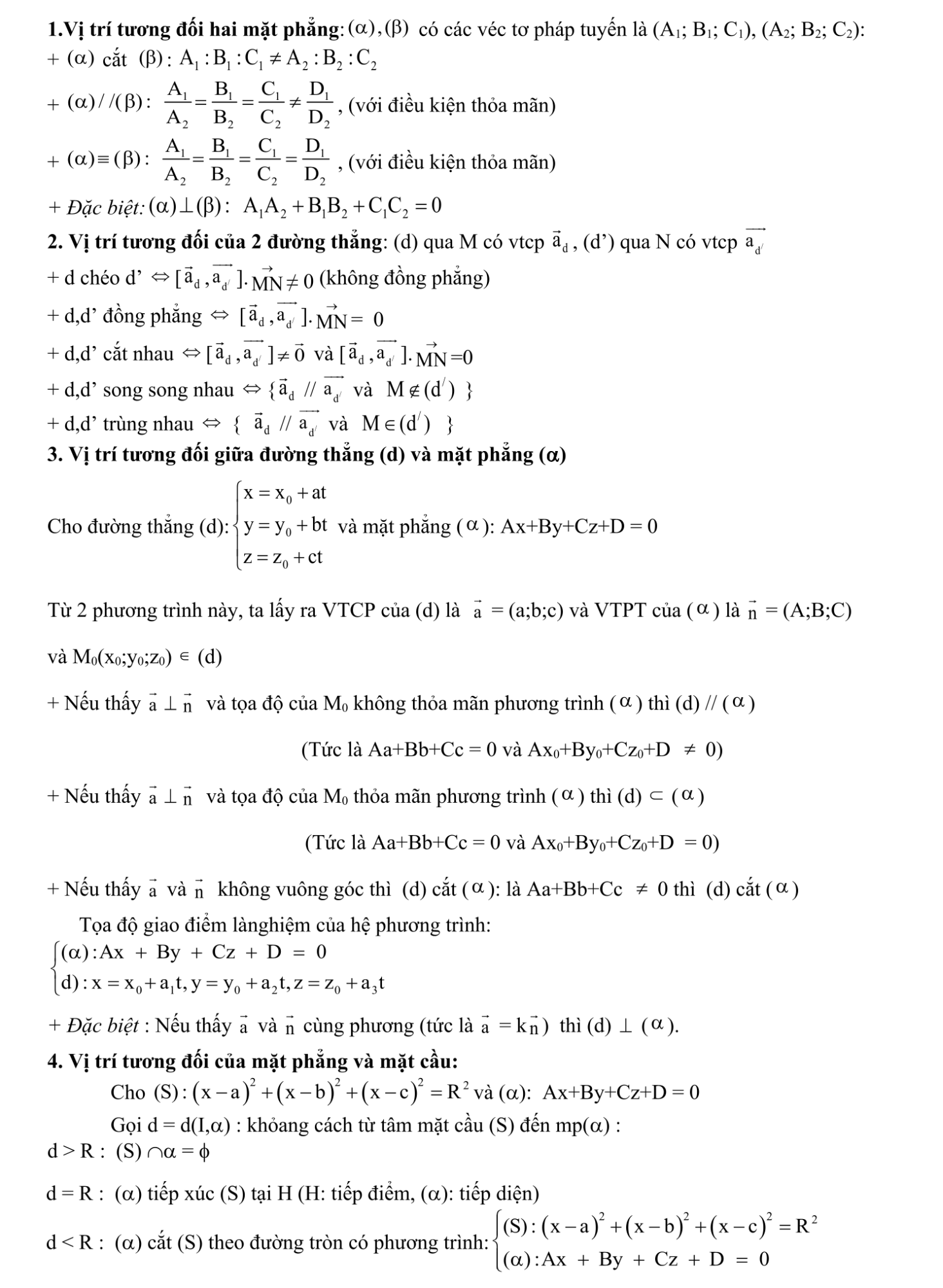 Vị trí tương đối giữa điểm, mặt phẳng, đường thẳng, mặt cầu