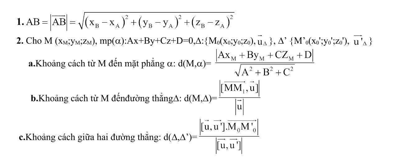 Tóm tắt các kiến thức quan trọng về khoảng cách trong chuyên đề hình học không gian thi THPT Quốc Gia như sau: