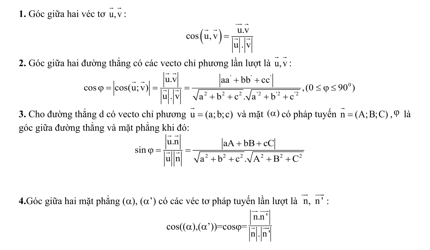 Tóm tắt các kiến thức quan trọng về góc trong chuyên đề hình học không gian thi THPT Quốc Gia như sau: