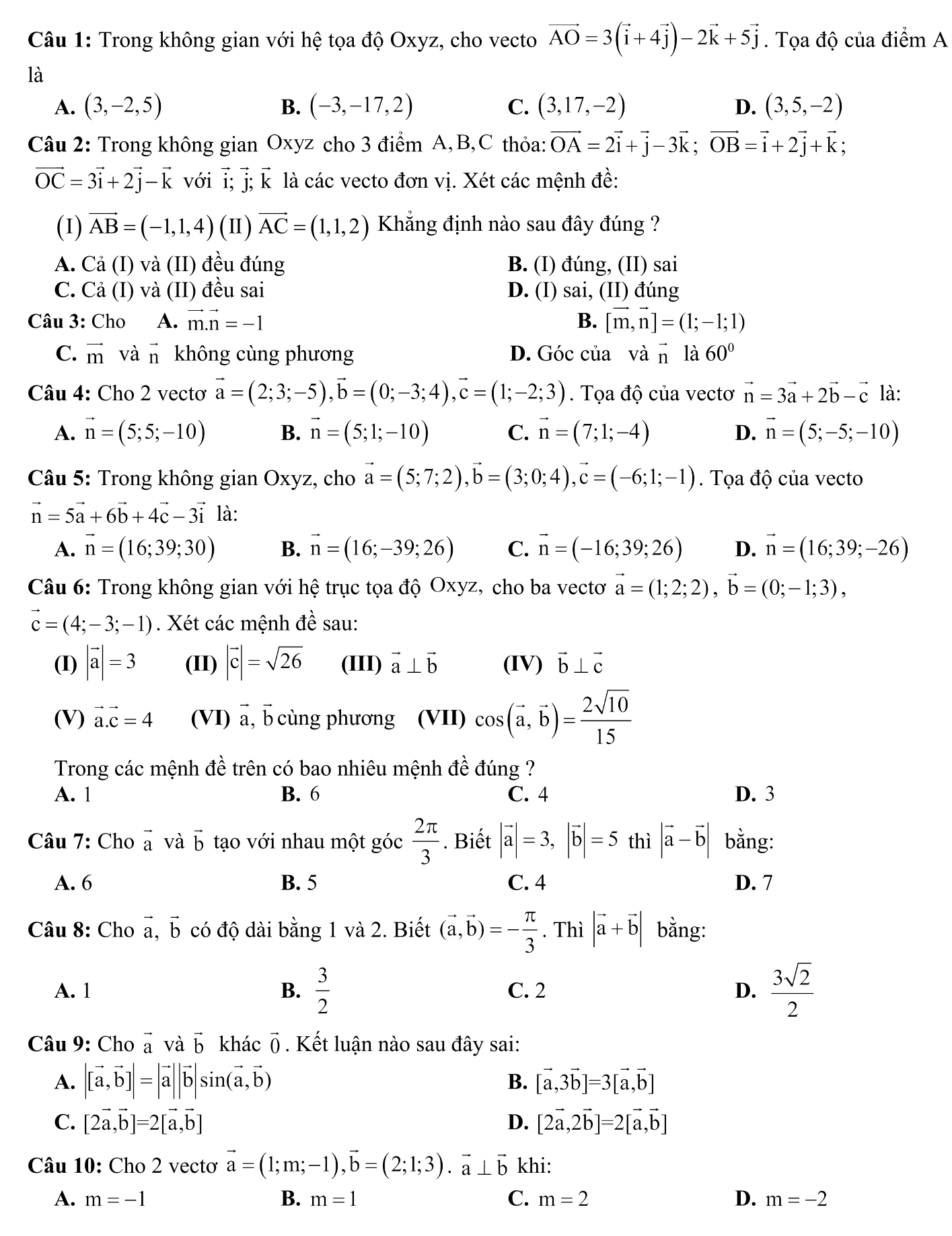 Độ điểm, tọa độ vectơ và các phép toán vectơ