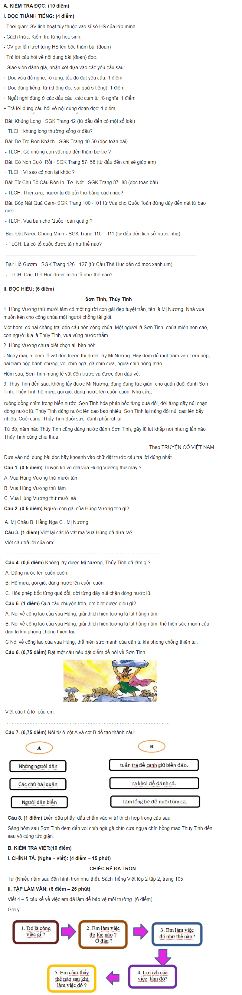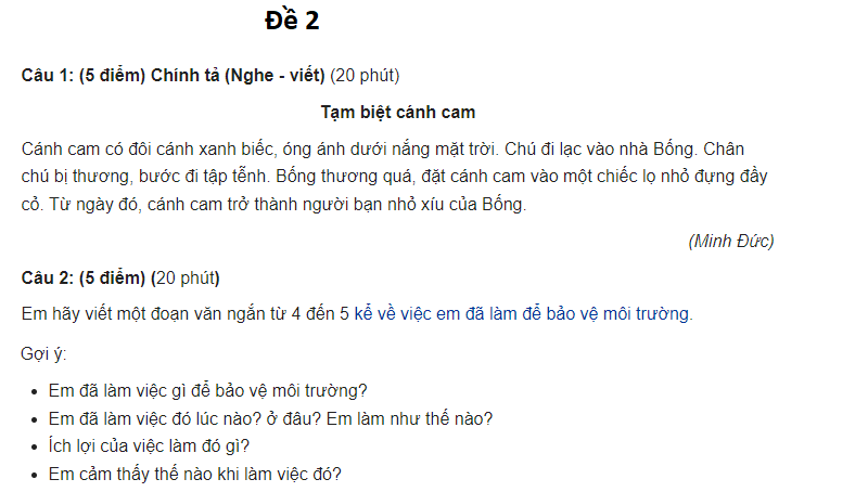 Gợi ý một số đề thi thử tiếng Việt lớp 2