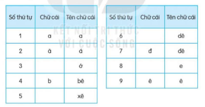 Câu 2: Tìm những chữ cái còn thiếu trong bảng. Học thuộc bảng chữ cái.