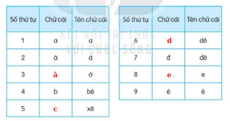 Câu trả lời: Sắp xếp các chữ cái trên theo đúng thứ tự trong bảng chữ cái là: a, b, c, d, đ, e.