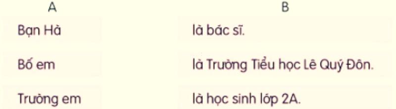 Câu 2: Kết hợp từ ngữ ở cột A với từ ngữ ở cột B để tạo câu giới thiệu.