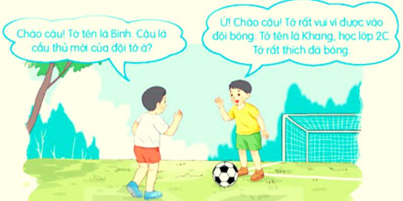 Khang đã giới thiệu tên, lớp học và sở thích của mình với Bình rằng: “Tớ tên là Khang, học lớp 2C. Tớ rất thích đá bóng.”