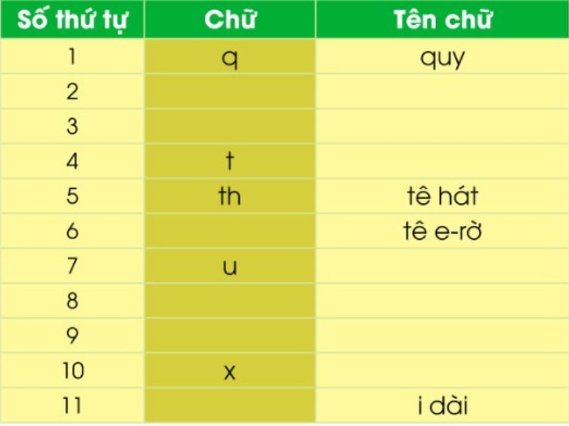 Câu 2: Tìm chữ, tên chữ và viết vào vở 11 chữ trong bảng sau: