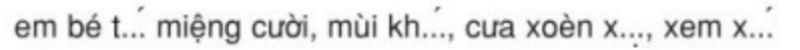 Em bé toét miệng cười, mùi khét, cưa xoèn xoẹt, xem xét.
