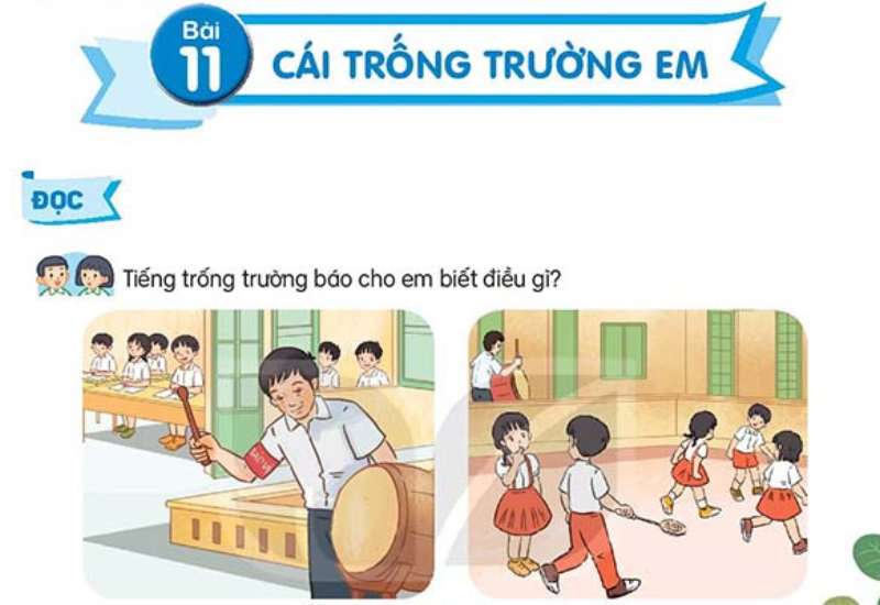 Câu hỏi trang 48 Tiếng Việt lớp 2: Bé hãy quan sát bức tranh dưới đây và cho biết: Tiếng trống trường dự báo cho em biết điều gì?