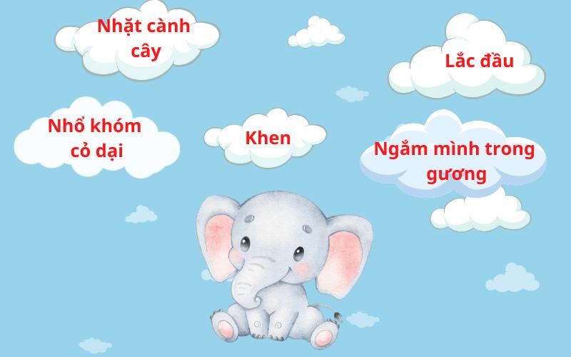 Câu trả lời: Những từ ngữ chỉ hoạt động của voi em là: