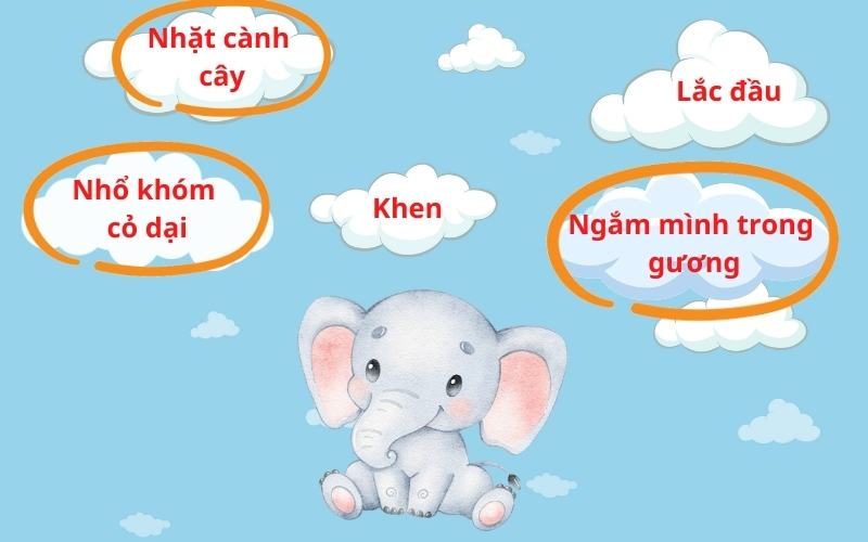 Câu 1: Những từ ngữ nào dưới đây chỉ hoạt động của voi em?