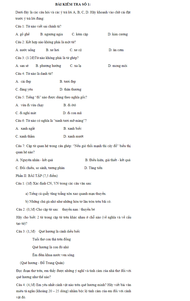 Làm các bài tập dạng đề tiếng Việt nâng cao