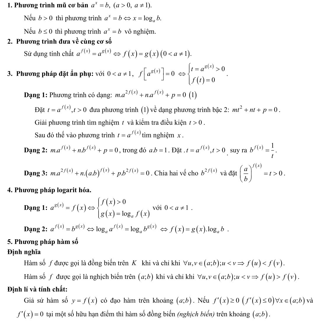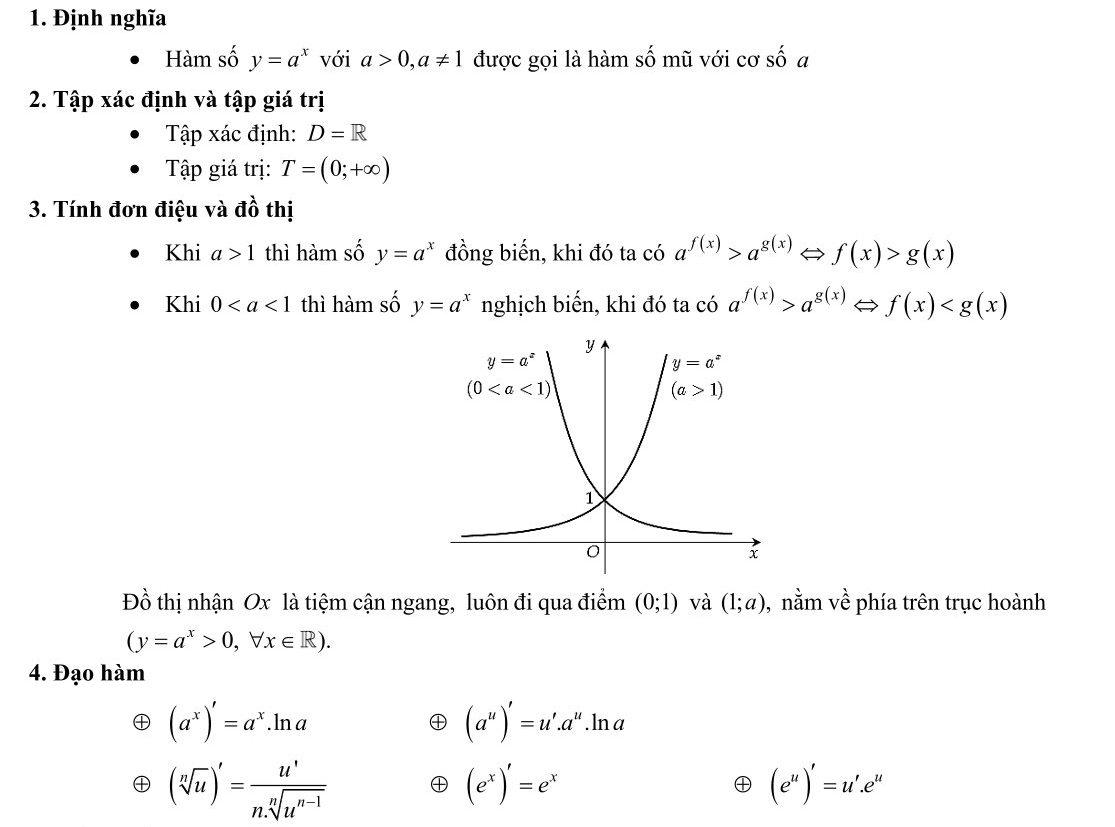 Dưới đây là phần tóm tắt lý thuyết hàm số mũ hàm số logarit mà các thí sinh nên “bỏ túi”: