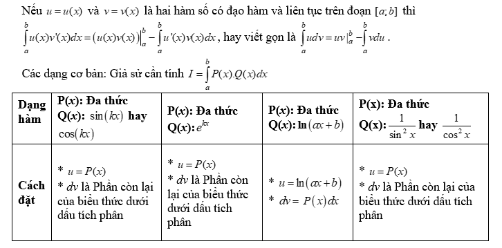Dạng 1: Tính tích phân theo công thức sẵn có