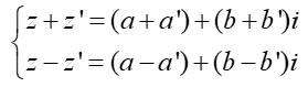 Cho hai số phức z = a + bi và z’ = a’ + b’i.