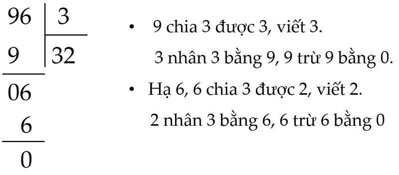 Ghi thương vào phần kết quả; nếu không chia được thì thêm 0 và lấy tiếp chữ số tiếp theo.