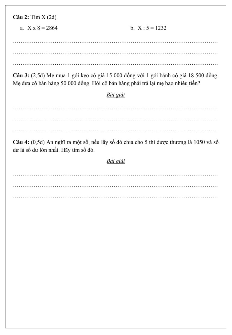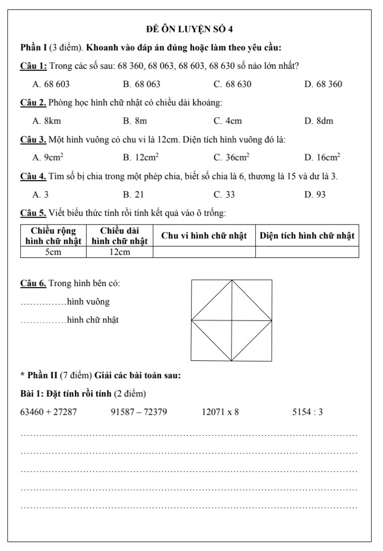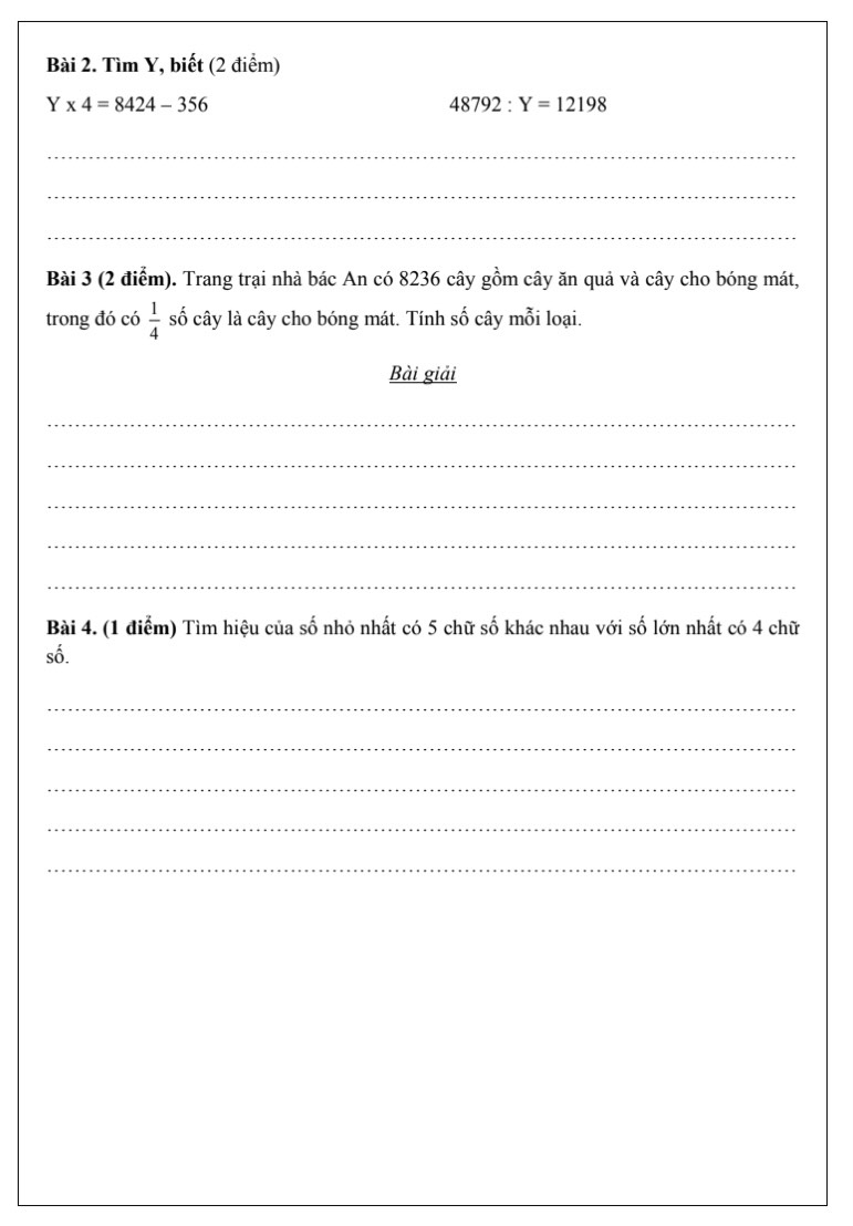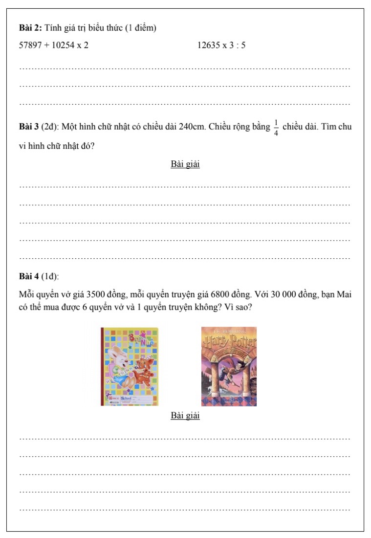 Tổng hợp các đề toán lớp 3 lên lớp 4