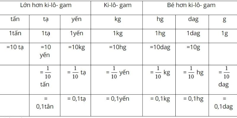 Tìm mối liên hệ giữa hai đơn vị đo đã cho.