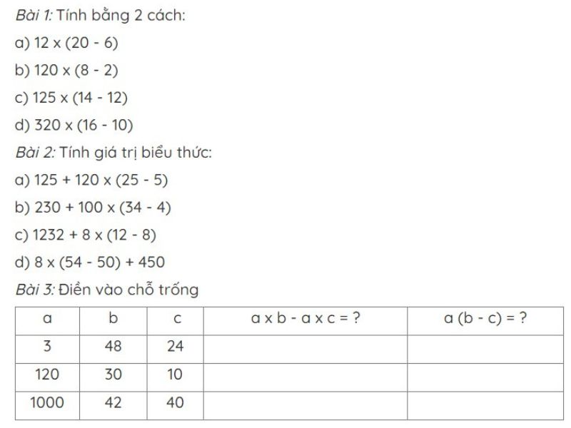 Thường xuyên giải các bài tập toán lớp 4 nhân một số với một hiệu là cách để các em ghi nhớ kiến thức, củng cố kỹ năng làm bài thuần thục vô cùng hiệu quả. Từ đó, các em sẽ dễ dàng giải các bài tập từ cơ bản đến nâng cao trong SGK, sách bài tập hoặc các kì thi quan trọng.