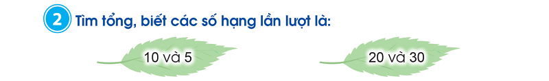 Ta có 10 + 5 = 15 nên tổng của hai số hạng 10 và 5 là 15