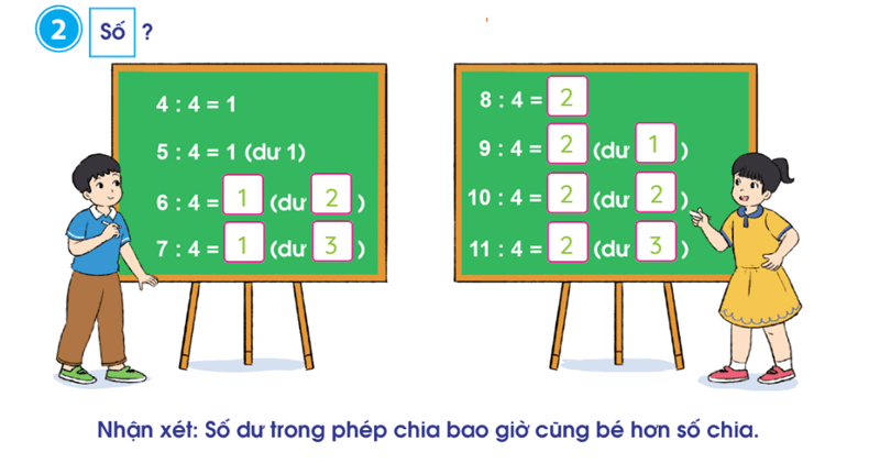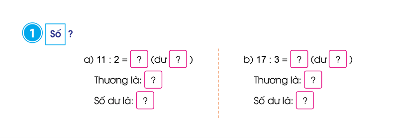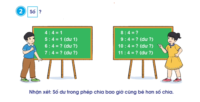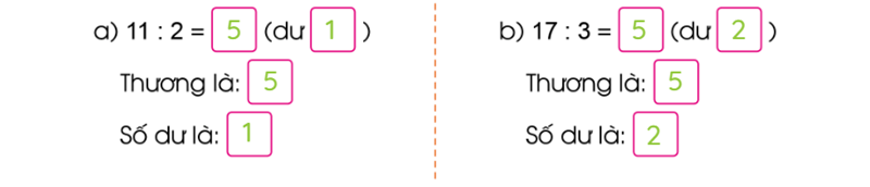 Ví dụ: 19 : 6 = 3 dư 1. Vì số dư của phép tính bằng 1 (khác 0), nên ta gọi đây là phép chia có dư.