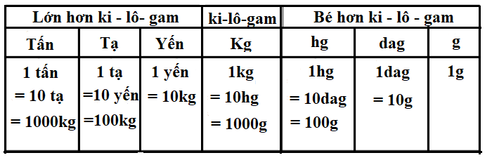 Bảng đơn vị đo khối lượng Lớp 4
