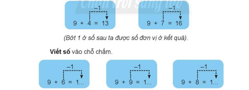 Thực hiện tách, gộp các số cộng với số 9 rồi biến chúng thành số tròn chục rồi thực hiện cộng nhẩm. Ví dụ: 9 + 27 = 9 + 1 + 26 = 10 + 26 = 36