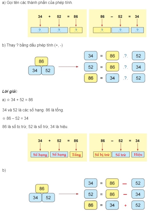Dạng 2: Gọi tên các thành phần của phép tính/viết phép tính đúng