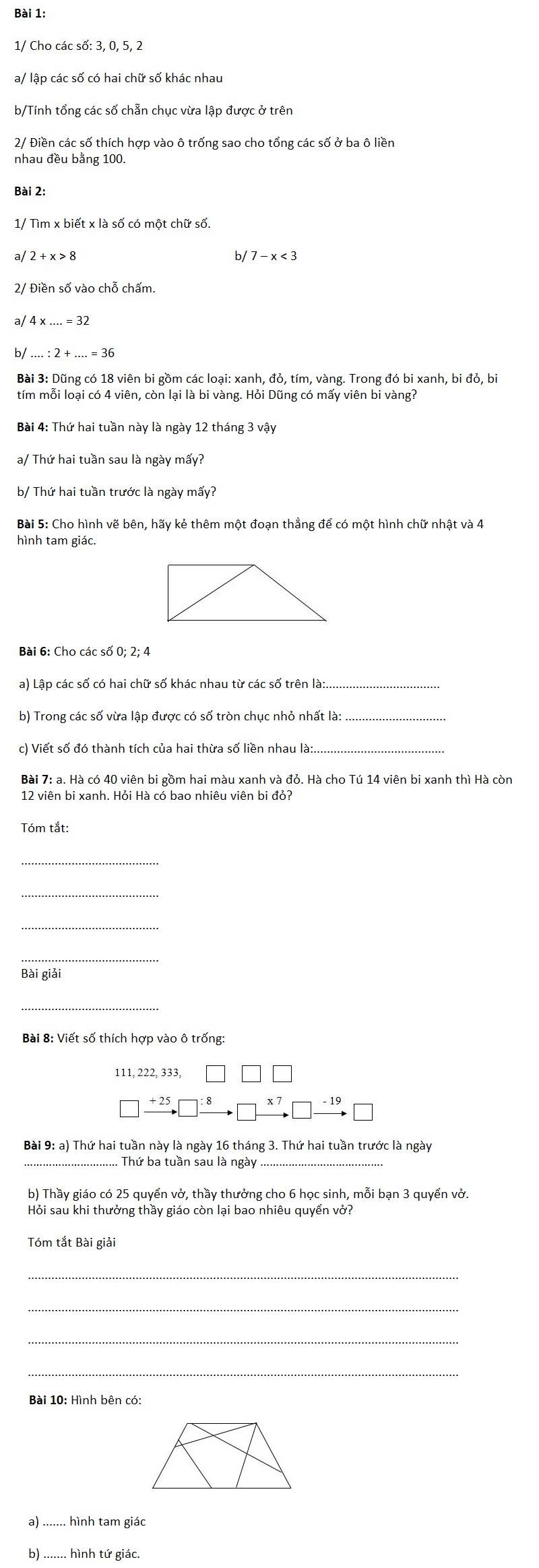 Tổng hợp một số bài tập và đề thi thử học sinh giỏi toán lớp 2