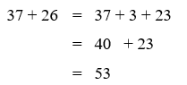 Dùng số tròn chục gần nhất rồi trừ số thừa. Ví dụ: 24 + 29 = 30 + 30 – 6 – 1 = 53. Đây là một cách tính ngược lại so với cách tính ở trên.