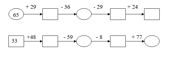 63 + 23 – x = 29; x – 12 + 45 = 59; 56 – 18 + x = 99; 49 + 26 + x = 84