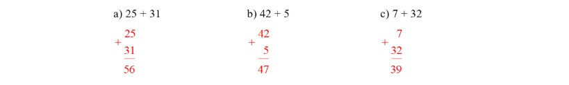 Viết số hạng thứ hai ở dòng dưới sao cho các chữ số ở cùng một hàng thẳng cột với nhau (đơn vị thẳng đơn vị, chục thẳng chục, trăm thẳng trăm...).