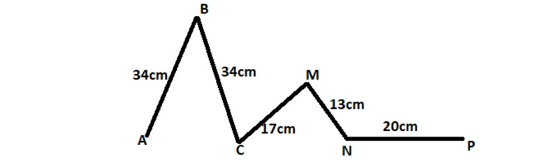 AB + BC + CM + MN + NP = 34 + 34 + 17 + 13 +20 = 118 (Cm)