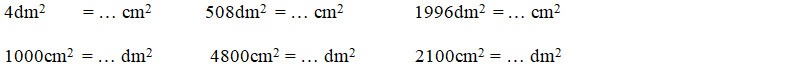 - Khi đổi đơn vị dm² sang đơn vị nhỏ hơn liền kề thì ta nhân số đó với 100