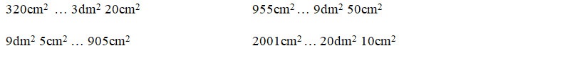 Phương pháp giải: Các em tiến hành so sánh các số tự nhiên, nếu đơn vị đo chưa cùng là dm² cần phải quy đổi về cùng đơn vị rồi mới tiếp tục so sánh.