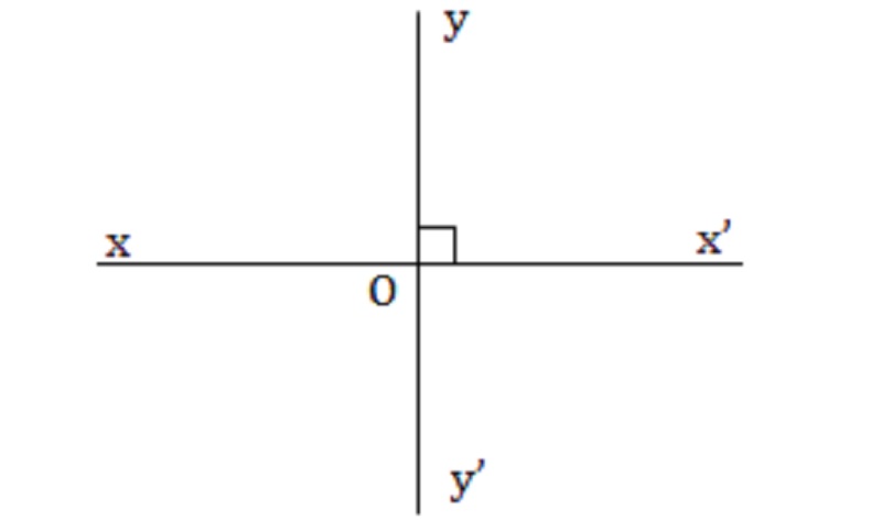 Hai đường thẳng xx’ và yy’ vuông góc với nhau tạo thành 4 góc vuông có chung đỉnh O.