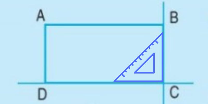 Kéo dài hai cạnh BC và DC của hình chữ nhật ABCD, ta được hai đường thẳng vuông góc với nhau.