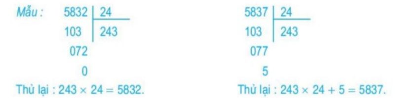 Bước 3: Kiểm tra số dư của phép chia, nếu số dư bằng 0 thì đó là phép chia hết; nếu số dư khác 0 thì đó là phép chia có dư.