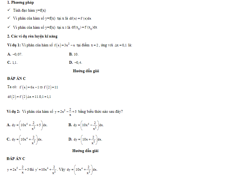 Dạng 1. Tìm vi phân của hàm số y = f(x).