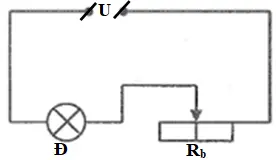Do đó phải mắc nối tiếp bóng đèn và biến trở với nhau. Sơ đồ mạch điện như hình vẽ bên dưới: